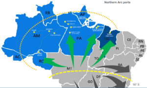 Recent years have witnessed progressive competitiveness of Brazilian commodities, mainly soya beans and corn (maize), which exports have exceeded those of traditional grain producers, such as the United States and Argentina, making Brazil the world’s largest exporter of these agricultural products. Successive record crops and the increasing demands of the consumer markets, principally China, have led to increasing bottlenecks in the already overburdened grain ports in the South and Southeast regions, resulting in higher transportation costs and longer journeys from … Continue reading Brazil’s Northern Arc ports