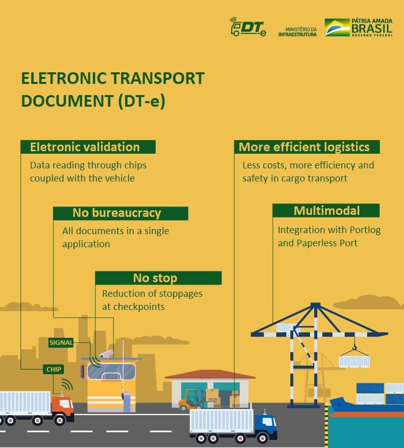 Last month, as part of measures to streamline processes and facilitate trade and transport, the federal government launched the Documento Eletrônico de Transporte (electronic transport document), known by the acronym DT-e.