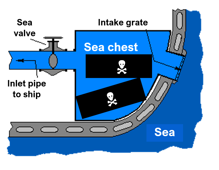 A sea chest is a compartment situated in the side or bottom hull of a ship, located below the waterline and typically not accessible from within the vessel. It serves as an intake point for drawing in seawater, which is used on board for ballast, firefighting and engine cooling purposes. Figure 5