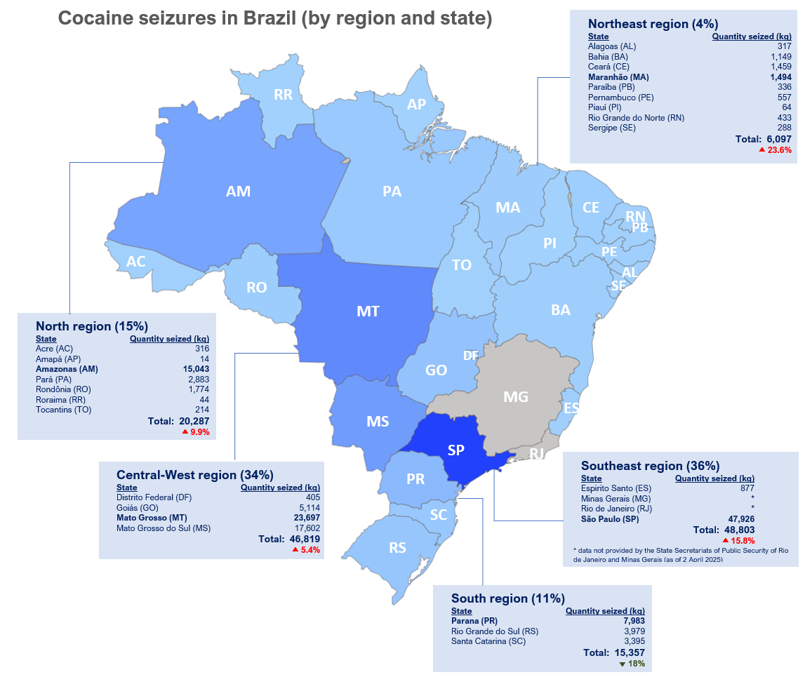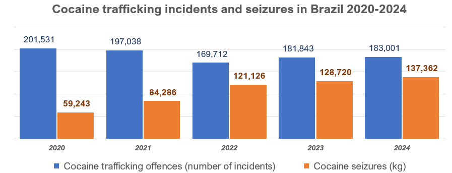 In Brazil, each state organises and funds its own law enforcement actions and legislates on drug-related matters within the framework established by federal laws and international conventions. However, there are substantial variations in drug policymaking and the reporting mechanisms for drug trafficking incidents among the various state governments. This often leads to discrepancies in data, so official statistics should be analysed with caution, as they may be incomplete or vary significantly.
