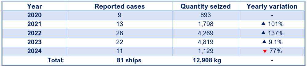 Though there has been only a marginal increase in maritime drug smuggling incidents and seizures compared to 2023, levels remain alarmingly high. The growing criminalisation of seafarers in connection with ship-sourced illicit drug trafficking continues to raise deep concerns within the maritime industry, highlighting the urgent need for concerted action against this widespread menace.