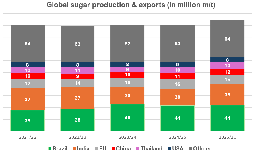 Despite this temporary decline, Brazil comfortably retains its position as the world’s largest producer and exporter of sugar, a status it is expected to maintain in the upcoming seasons. The country’s abundant sugarcane harvest, coupled with a favourable ethanol-sugar mix, is anticipated to yield the second-largest output and export levels during the 2025/26 cycle, only marginally behind 2023/24.