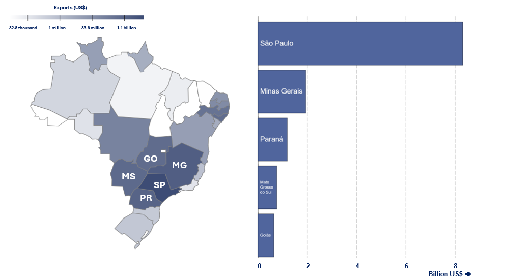 Figure 2: 2025 Brazilian sugar export revenues by producing state. Source: MDIC/ComexStat