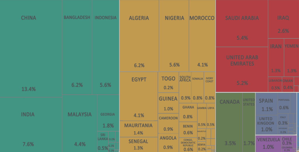 Figure 4: Share of purchases of Brazilian sugar shipments by region, Jan-Dec 2025. Source: MDIC/ComexStat